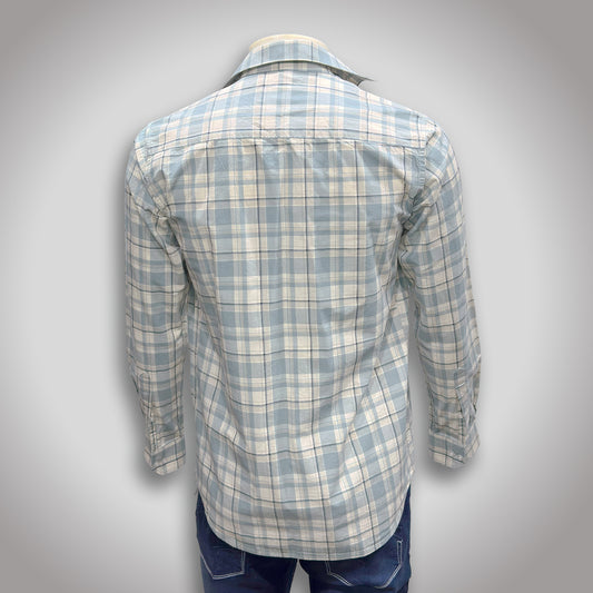 पुरुष नेव्ही आणि फिकट निळा चेकर्ड कॉटन शर्ट