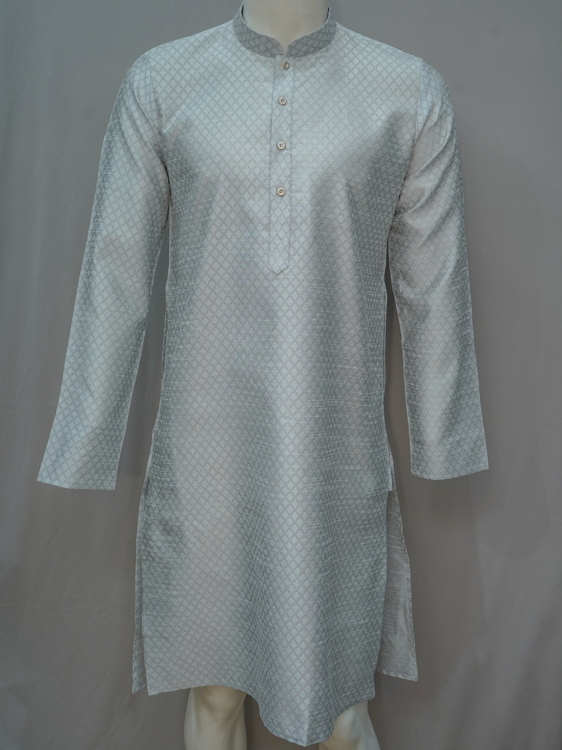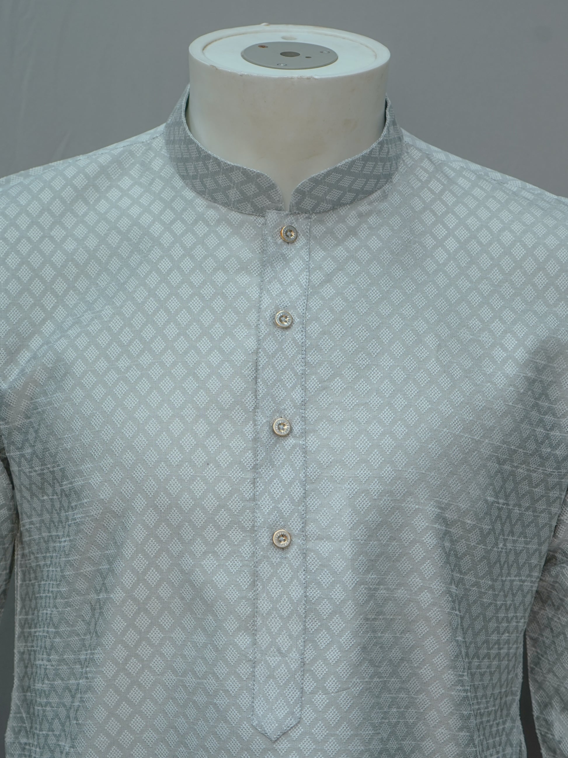 पुरुषांचा राखाडी डायमंड विणलेला कॉटन कुर्ता - रोजचा जातीय पोशाख