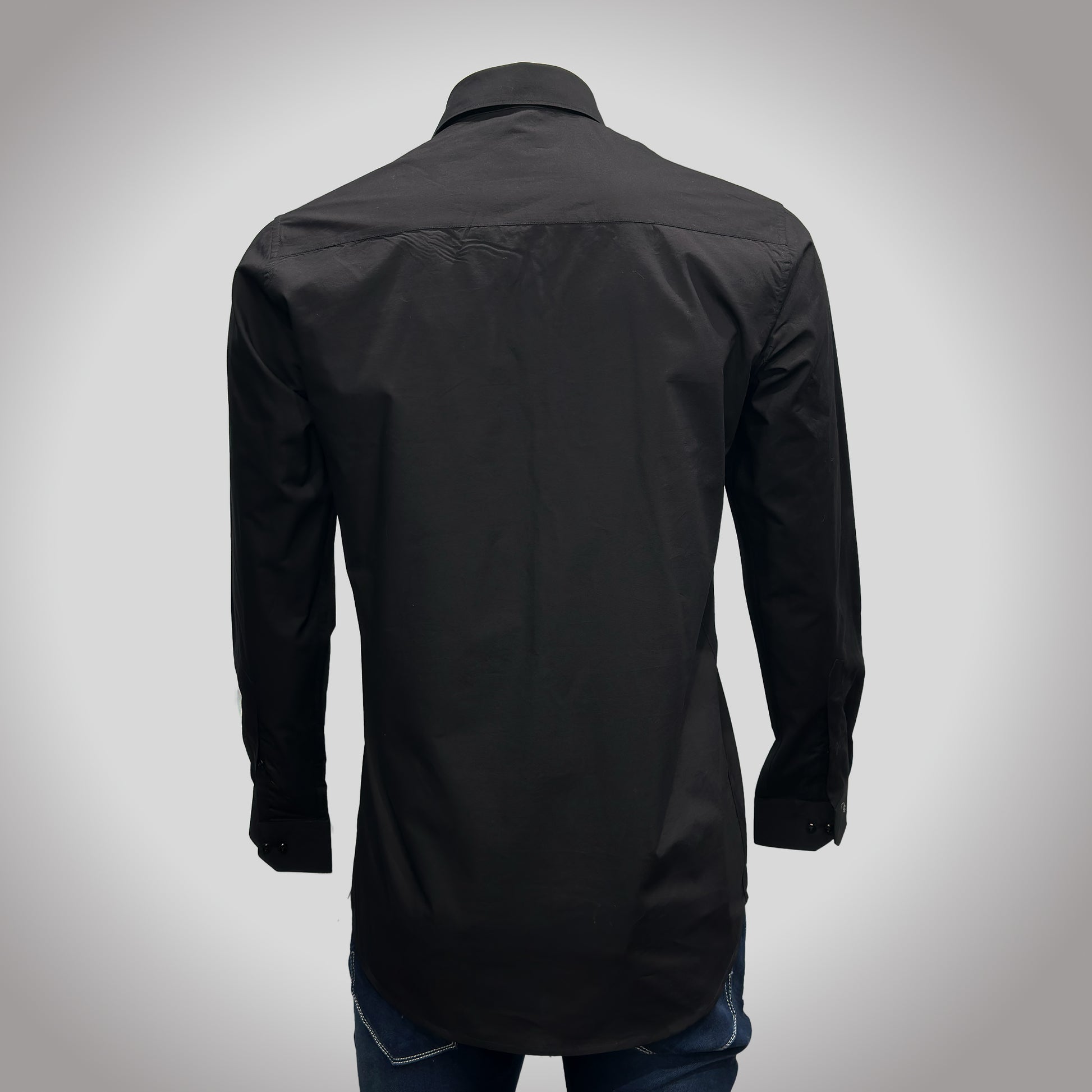 पुरुषांसाठी या प्रीमियम ब्लॅक शर्टसह परिष्कृततेकडे पाऊल टाका. उच्च-गुणवत्तेच्या फॅब्रिकपासून तयार केलेले, ते शैली, आराम आणि टिकाऊपणाचे परिपूर्ण मिश्रण देते. औपचारिक कार्यक्रमांसाठी, अनौपचारिक सहलीसाठी किंवा तुम्ही कुठेही जाण्यासाठी विधान करण्यासाठी आदर्श.