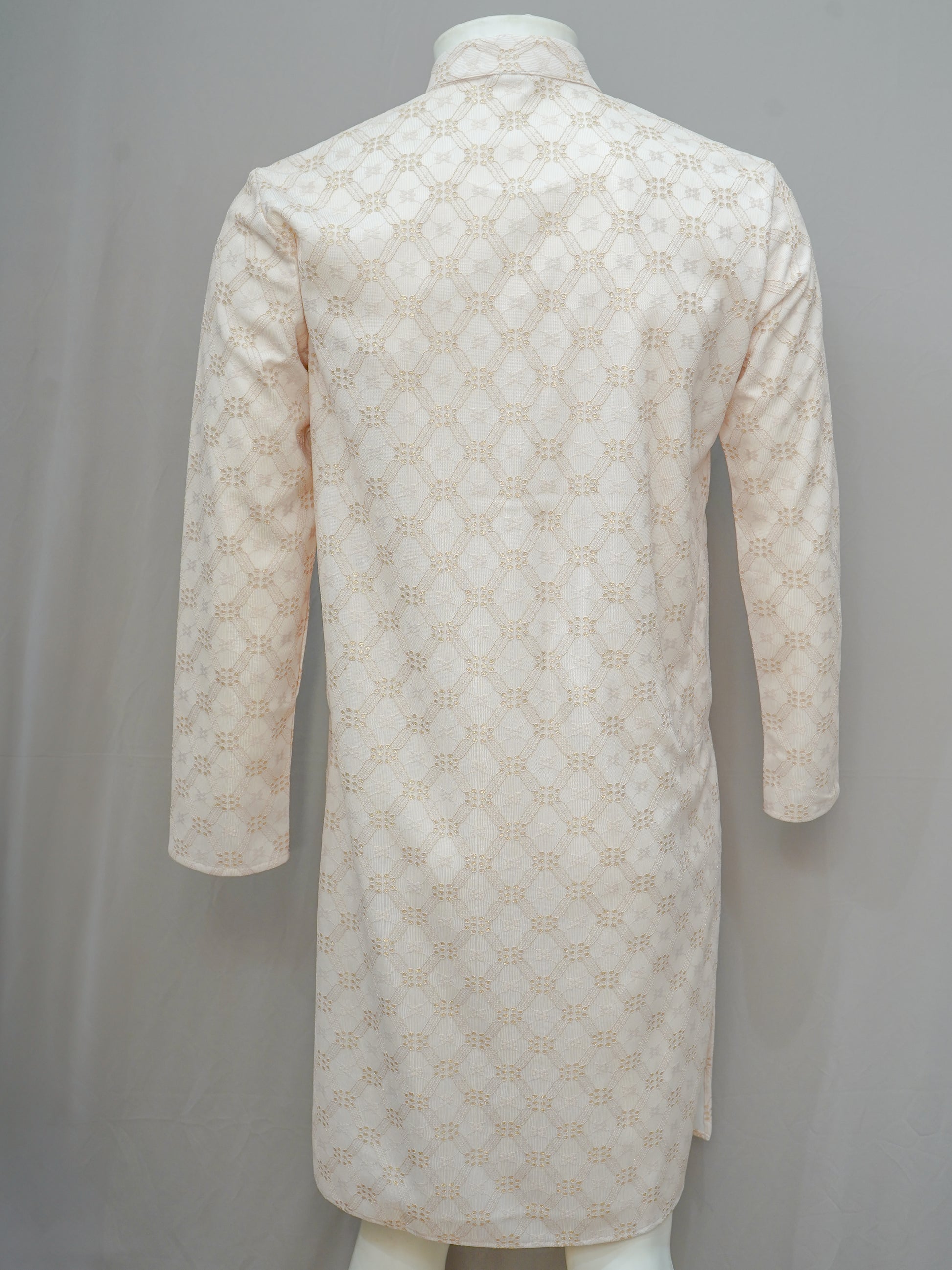 Redefine sophistication with the Men's Beige Floral Lattice Kurta, showcasing an intricate lattice design in soft beige tones. Made from high-quality fabric, this kurta ensures both style and comfort for festive occasions, weddings, and celebrations. The subtle color and intricate detailing make it a timeless addition to your ethnic wardrobe.