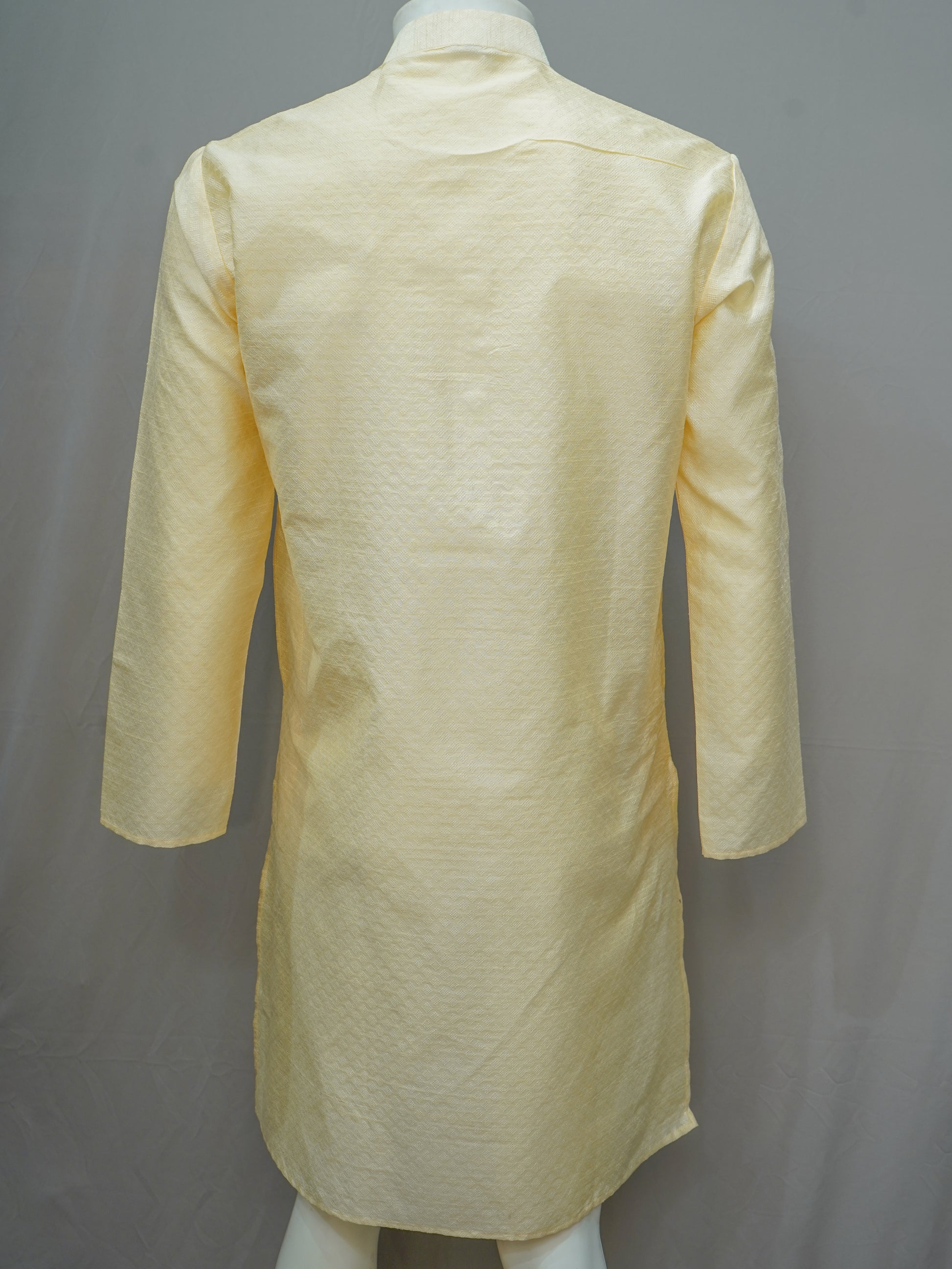 Men's Cream Diamond Weave Cotton Kurta - Festive Wear