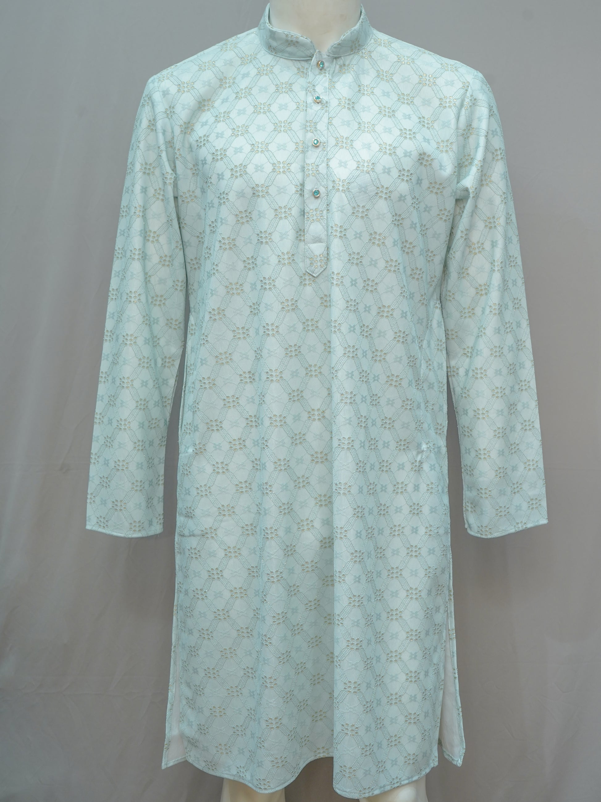 The Men's Pista Green Floral Lattice Kurta combines soft tones with a refined floral lattice design, creating a statement of subtle elegance. Tailored with premium fabric, it offers a comfortable fit while exuding ethnic charm. Ideal for festive gatherings, weddings, and celebrations, this kurta ensures you stand out with grace and sophistication.