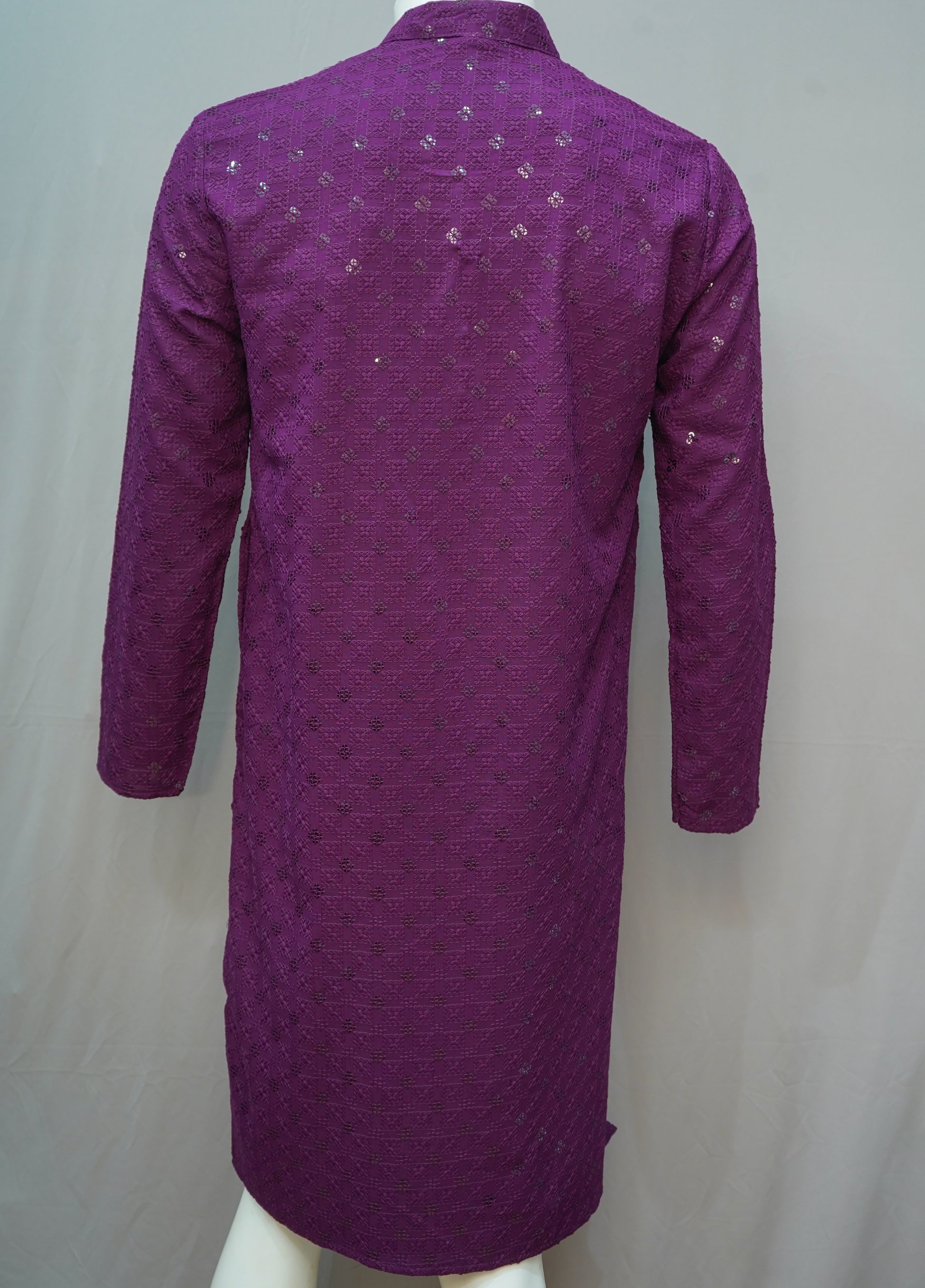 This Men's Purple Chikankari Embroidered Kurta is a statement piece crafted for celebrations and special occasions. Its intricate chikankari embroidery and rich purple shade bring a regal charm to your ethnic wardrobe. Pair it with churidar or straight pants for a complete festive look.
